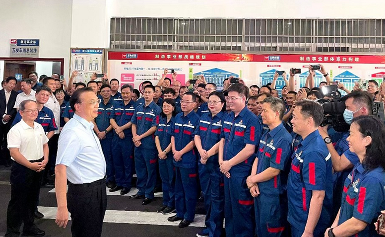 走出五發(fā)車間,李克強與玉柴研發(fā)、技能人才代表熱烈交流。他說,玉柴這70年來,始終聚焦主業(yè),而且始終瞄準國際先進技術和裝備水平,這走過的路是不平凡的,玉柴現在創(chuàng)造的業(yè)績也是輝煌的,所有玉柴人都應該為此感到自豪。看到玉柴這樣的發(fā)展態(tài)勢,看到玉柴所創(chuàng)造的產品,深感玉林真是一個美玉成林的地方,而玉柴就是“玉中之美”,不負國家,也不負玉林這個美譽,“眾人在拾柴,火焰很高”。希望玉柴堅定不移走創(chuàng)新驅動高質量發(fā)展之路,努力打造世界一流企業(yè)。