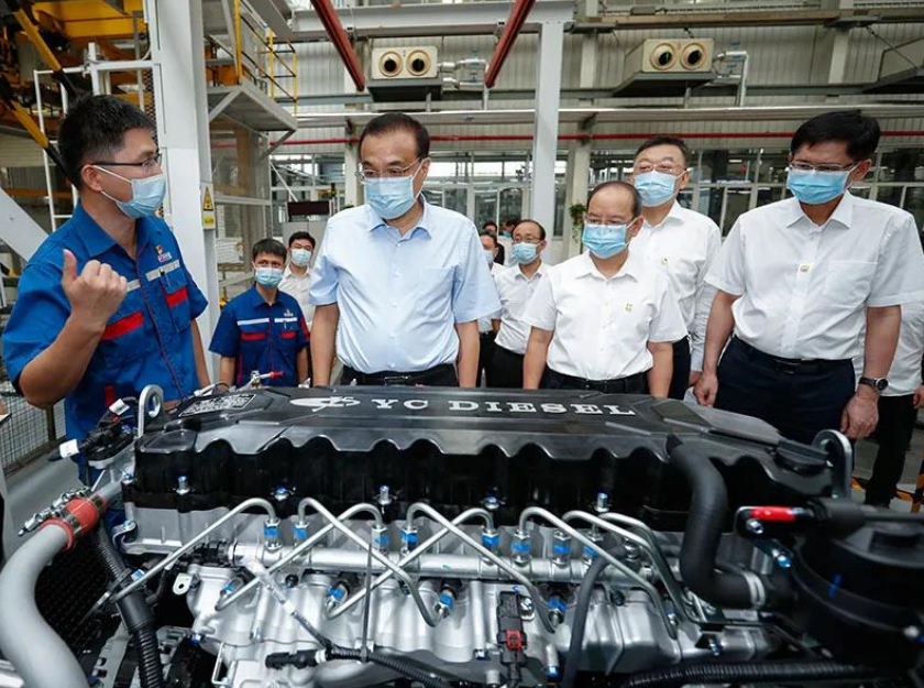 李克強說:“高速船用發(fā)動機最大功率達到4000馬力,農業(yè)機械用發(fā)動機突破700馬力,這是非常不容易的,由此可以看出整個企業(yè)的創(chuàng)新發(fā)展活力?!?